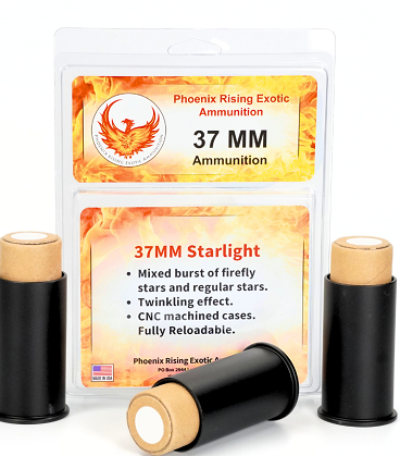 3 Round Pack – 37mm Starlight Live Ammo. Produce a mixed burst of firefly stars and regular stars when launched.